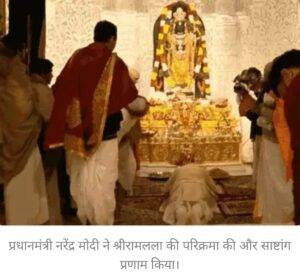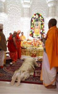 रामलला की प्राण प्रतिष्ठा और परिक्रमा के बाद प्रभु श्रीराम के सामने प्रधानमंत्री मोदी दंडवत हो गए।