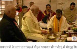अयोध्या के श्रीराम मंदिर में रामलला की मूर्ति की प्राण प्रतिष्ठा हो गई है। प्रधानमंत्री मोदी ने विधि-विधान से प्राण प्रतिष्ठा की। इस दौरान मुख्यमंत्री योगी आदित्यनाथ, RSS चीफ भी उनके साथ दिखे।