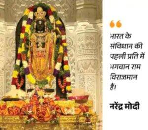 प्रधानमंत्री मोदी ने कहा, ‘आज से हजार साल के बाद भी लोग इस तारीख की चर्चा करेंगे। यह राम की कृपा है कि हम सब इस पल के साक्षी हैं। ये समय सामान्य समय नहीं है। ये काल के चक्र पर सर्वकालिक स्याही से अंकित हो रहीं अमिट स्मृति रेखाएं हैं।’ उन्होंने रामभक्त हनुमान के साथ ही माता जानकी, लक्ष्मण, भरत, शत्रुघ्न सभी को प्रणाम किया।