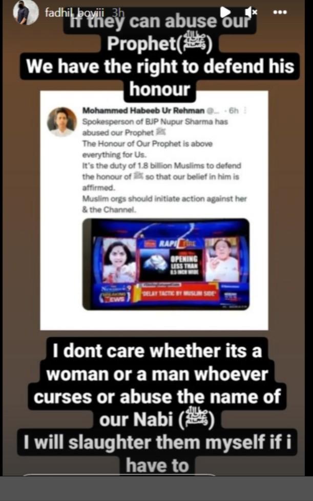 लगभग 10 दिन पहले टीवी पर एक बहस में नुपूर शर्मा की टिप्पणियों और जिंदल के आपत्तिजनक ट्वीट के बाद ट्विटर पर एक अभियान चलाकर कुछ देशों में भारतीय उत्पादों के बहिष्कार का आह्वान किया गया था। कार्रवाई के बाद नुपूर शर्मा ने बिना शर्त टीवी बहस में दिए गए अपने विवादास्पद बयान को वापस ले लिया था और दावा किया था कि उनकी टिप्पणी ‘‘उनके अराध्य महादेव के निरंतर अपमान और तिरस्कार’’ की प्रतिक्रिया में आई थीी।