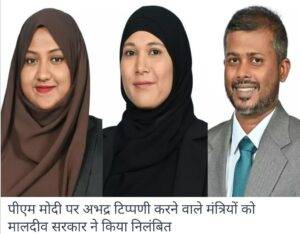 प्रधानमंत्री मोदी पर अभद्र टिप्पणी करने वाले मंत्रियों को मालदीव सरकार ने किया निलंबित