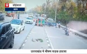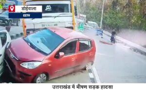 देहरादून-हरिद्वार राष्ट्रीय राजमार्ग पर डोईवाला के पास लच्छीवाला टोल प्लाजा पर सुबह आठ बजे दुर्घटना देखने वालों आत्मा कांप गई की .