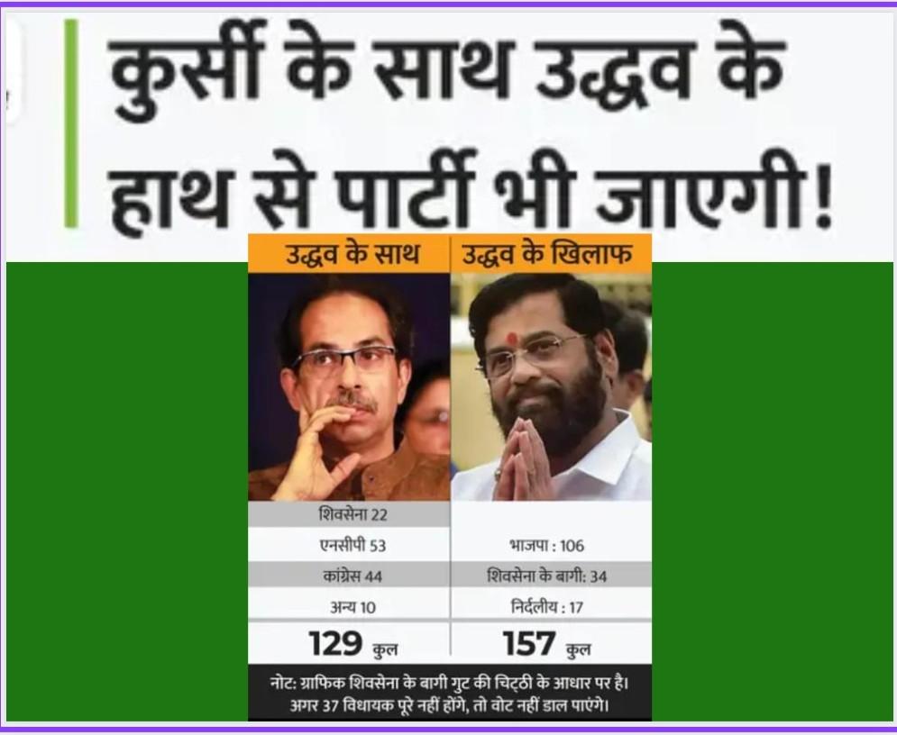 दरअसल, शरद पवार भी उद्धव को सलाह दे चुके थे कि मुख्यमंत्री पद पर शिंदे को ही बैठा दो। उधर, शिंदे आक्रामक ही रहे। बोले- गठबंधन बेमेल है और इसमें शिवसेना कमजोर हो रही है। गठबंधन से बाहर आना जरूरी है।