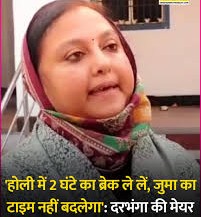 दरभंगा मेयर अंजुम आरा ने चेताया ‘जुमा नमाज का न बदलेगा समय होली में हो ब्रेक,घिरी तो मांगी माफी