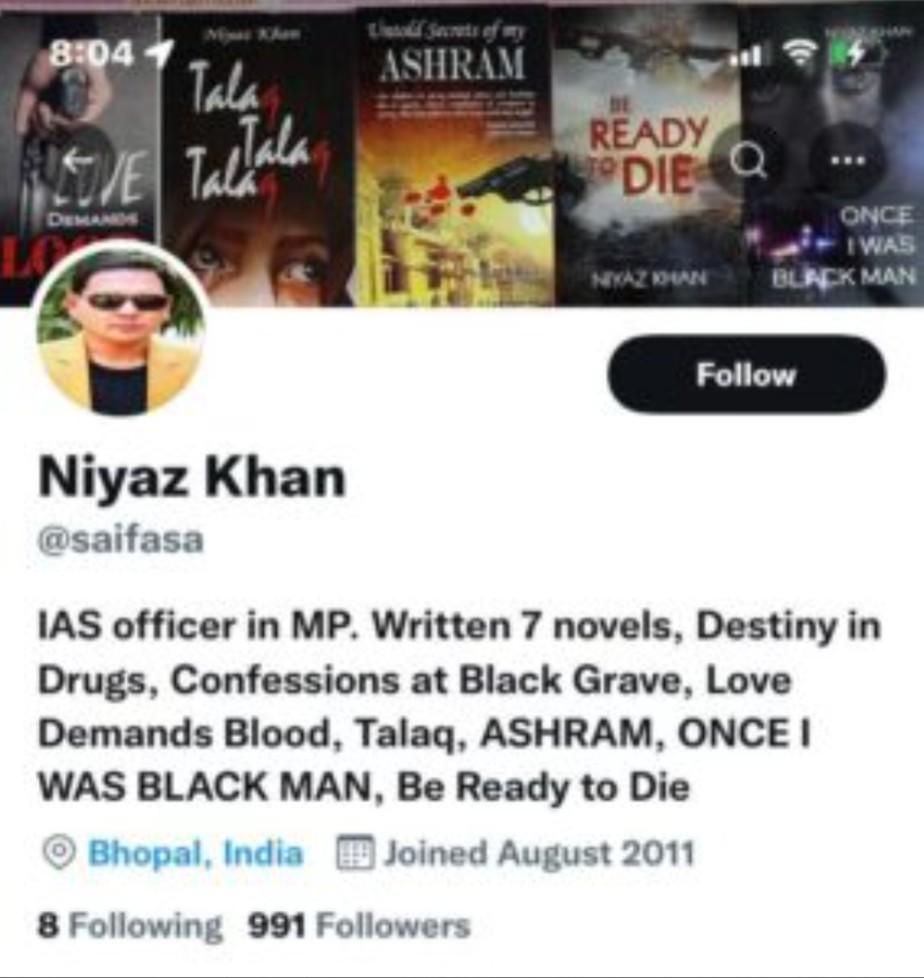 IAS Niyaz Khan Controversy : सात नॉवेल लिखने वाले एमपी के आईएएस अधिकारी नियाज खान एक बार फिर से चर्चा में हैं। नियाज खान ने द कश्मीर फाइल्स पर ट्वीट किया है। इसे लेकर कई तरह के सवाल उठे हैं। नियाज खान के ट्वीट पर एमपी सरकार के मंत्रियों ने भी प्रतिक्रिया दी है। नियाज खान को विवादों में रहना पसंद है।