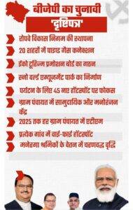 दृष्टि पत्र में स्मार्ट विलेज कार्यक्रम है. राज्य के गांव विकास को मिशन मोड में काम होगा. 2025 तक प्रत्येक ग्राम पंचायत में एटीएम, सुसज्जित सामुदायिक और मनोरंजन केंद्र खुलेंगे. पंचायत स्तरीय इंफ्रास्ट्रक्चर विकास को एक करोड़ रुपए दिए जाएंगे.