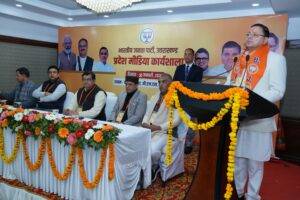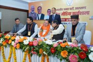 देहरादून 30 जनवरी। प्रधानमंत्री नरेन्द्र मोदी को प्रचंड बहुमत से तीसरी बार प्रधानमंत्री बनाने के संकल्प के साथ भाजपा की प्रदेश मीडिया कार्यशाला संपन्न हुई। लोकसभा चुनावों के दृष्टिगत आयोजित इस कार्यशाला में मुख्यमंत्री पुष्कर धामी, राष्ट्रीय मीडिया प्रभारी अनिल बलूनी, प्रदेश अध्यक्ष महेंद्र भट्ट और राष्ट्रीय प्रवक्ता गोपाल कृष्ण अग्रवाल एवं जफर इस्लाम का मार्गदर्शन प्राप्त हुआ