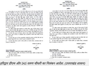 हरिद्वार डीएम और IAS वरुण चौधरी का निलंबन आदेश. (उत्तराखंड शासन)