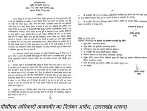 पीसीएस अधिकारी अजयवीर का निलंबन आदेश. (उत्तराखंड शासन)