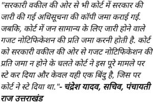 उत्तराखंड पंचायती राज सचिव चंद्रेश यादव की मानें तो सरकारी वकील की भूल से भी स्टे लगा. उन्होंने कहा–