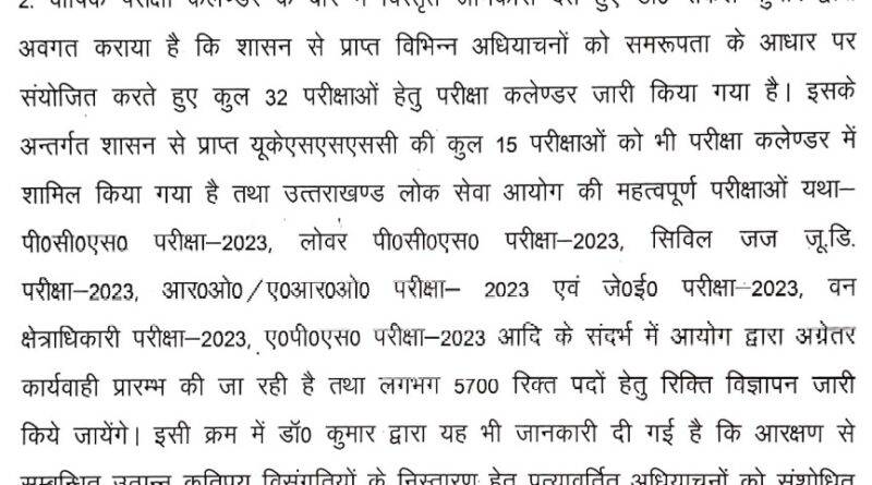 सार्वजनिक हुआ उत्तराखंड लोकसेवा आयोग का परीक्षा कलेंडर 2023