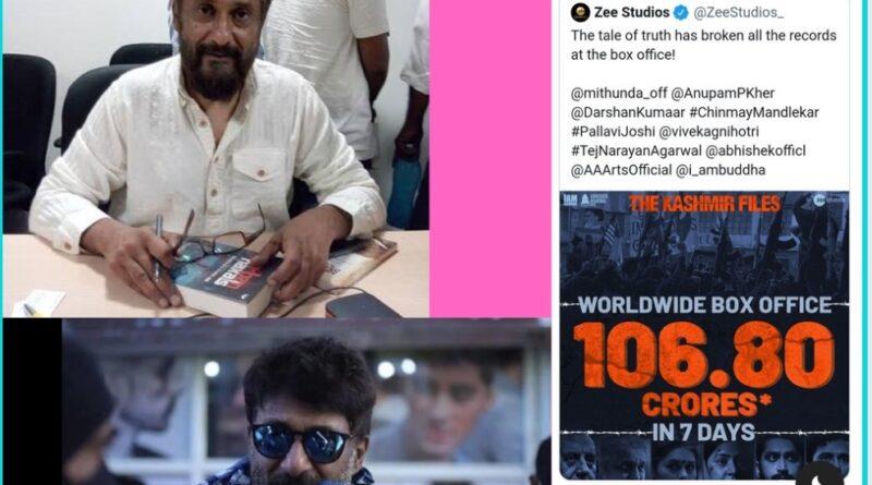 विवेक अग्निहोत्री को Y श्रेणी सुरक्षा,द कश्मीर फाइल्स सातवें दिन 100 करोड़ पार
