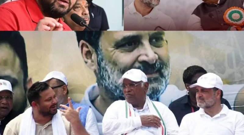 तेजस्वी यादव, मल्लिकार्जुन खड़गे और राहुल गांधी