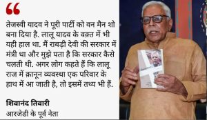 राबड़ी देवी की कैबिनेट में आबकारी मंत्री और राजद के वरिष्ठ नेता रहे शिवानंद तिवारी कहते हैं कि तेजस्वी यादव को लगता है कि वह अपने पिता की राजनीति अभी के समय कर लेंगे तो यह उनका ग़लत आकलन है.तेजस्वी यादव ने पूरी पार्टी वन मैन शो बना दी है. पार्टी का पूरा कैंपेन एक व्यक्ति केंद्रित रहा. लालू यादव के समय भी यही था. अब तो परिवार में ही सत्ता संघर्ष शुरू हो गया है. मैं राबड़ी देवी सरकार में मंत्री था और मुझे पता है कि सरकार कैसे चलती थी.