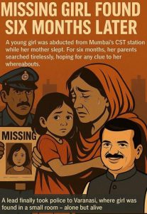 अगली सुबह, मुंबई पुलिस का एक इंस्पेक्टर वाराणसी में लैपटॉप के सामने बैठा था और उसने एक वीडियो कॉल खोला। स्क्रीन पर एक छोटी लड़की गुलाबी रंग की फ्रॉक में दिखी — वही रंग जो उसने उस दिन पहना था जिस दिन वह गायब हुई थी। मुंबई में ऑफिसर के पीछे खड़ी माँ ने अपनी बेटी को देखा और बिना आवाज़ किए गिर पड़ी। पिता बस दोहराते रहे, “यह मेरी आरोही है… यह मेरी बच्ची है…”