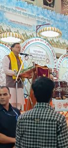 मुख्यमंत्री धामी जी ने अपने संबोधन में जैन समाज को पर्यूषण पर्व एवं चातुर्मास की हार्दिक शुभकामनाएं दीं। उन्होंने कहा कि जैन समाज ने सदैव शांति, अहिंसा एवं सह-अस्तित्व का संदेश दिया है। “जियो और जीने दो” की भावना को आत्मसात करने वाला यह समाज हर संकट व आपदा में राष्ट्र एवं समाज के साथ खड़ा रहता है। उन्होंने जैन समाज के समाज कल्याण एवं राष्ट्र निर्माण में दिए गए योगदान की सराहना की।