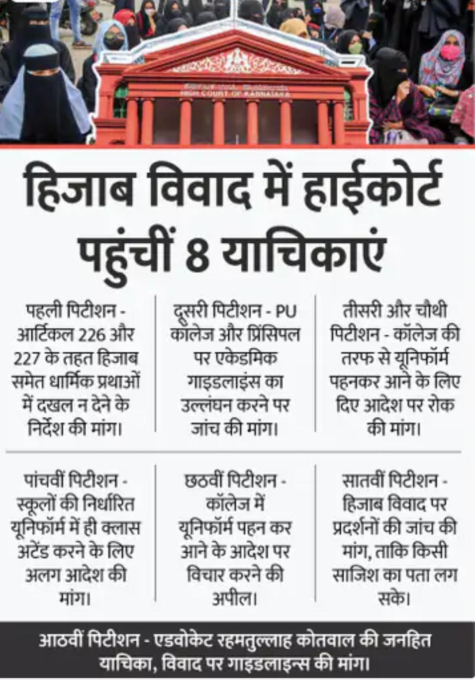 हिजाब विवाद में हाईकोर्ट में 8 याचिकाएं दाखिल हुईं